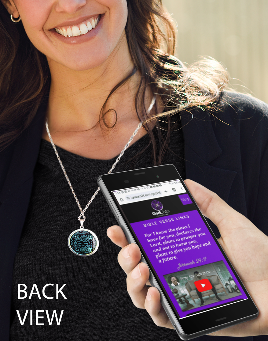 Every GodLinks pendant we design is embedded with an NFC chip as well as a unique QR code. When scanned or "tapped" with a smartphone, the user will be linked to our interactive, GodLinks Bible verse page instantly on their phone! Here you’ll be able to enjoy a different bible verse each time you tap or scan, watch our monthly video links and visit and over thirty different Christian Podcast’s. We are adding new links all the time so our supporters will be able to enjoy a new array of content throughout the years.