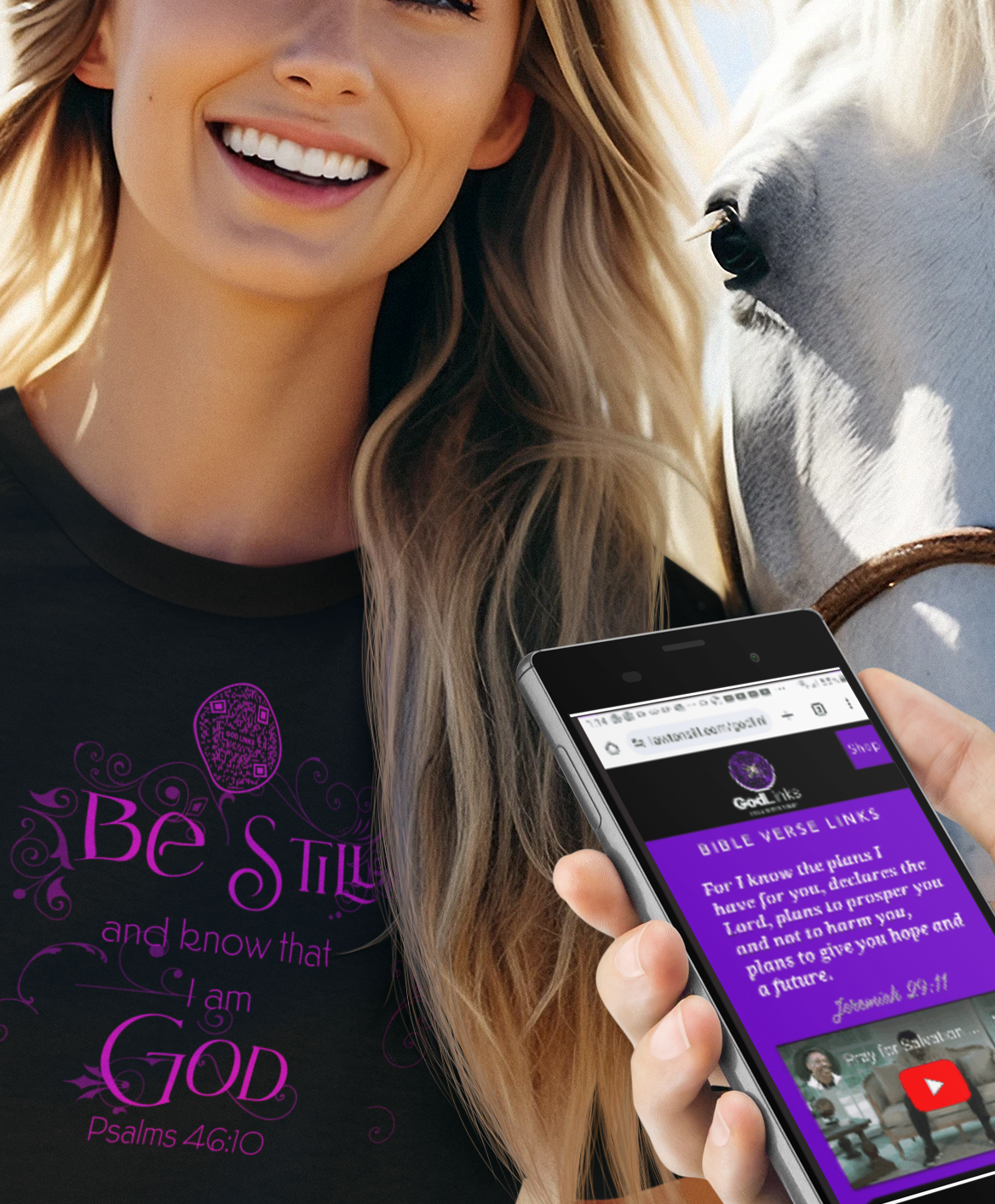 Every GodLinks shirt we design has a unique QR code printed within the design. When scanned with a smartphone, the user will be linked to our interactive, GodLinks Bible verse page instantly on their phone! Here you’ll be able to enjoy a different bible verse each time you scan, watch our monthly video links and visit over thirty different Christian Podcasts. We are adding new links all the time so our supporters will be able to enjoy a new array of content throughout the years.