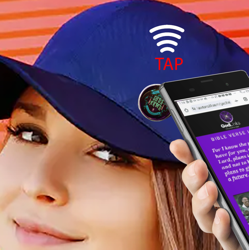 Every GodLinks lapel/hat pin we design is embedded with a unique NFC chip. When tapped with a smartphone, the user will be linked to our interactive, GodLinks Bible verse page instantly on their phone! Here you’ll be able to enjoy a different bible verse each time you tap, watch our monthly video links and visit and over thirty different Christian Podcast’s. We are adding new links all the time so our supporters will be able to enjoy a new array of content throughout the years.