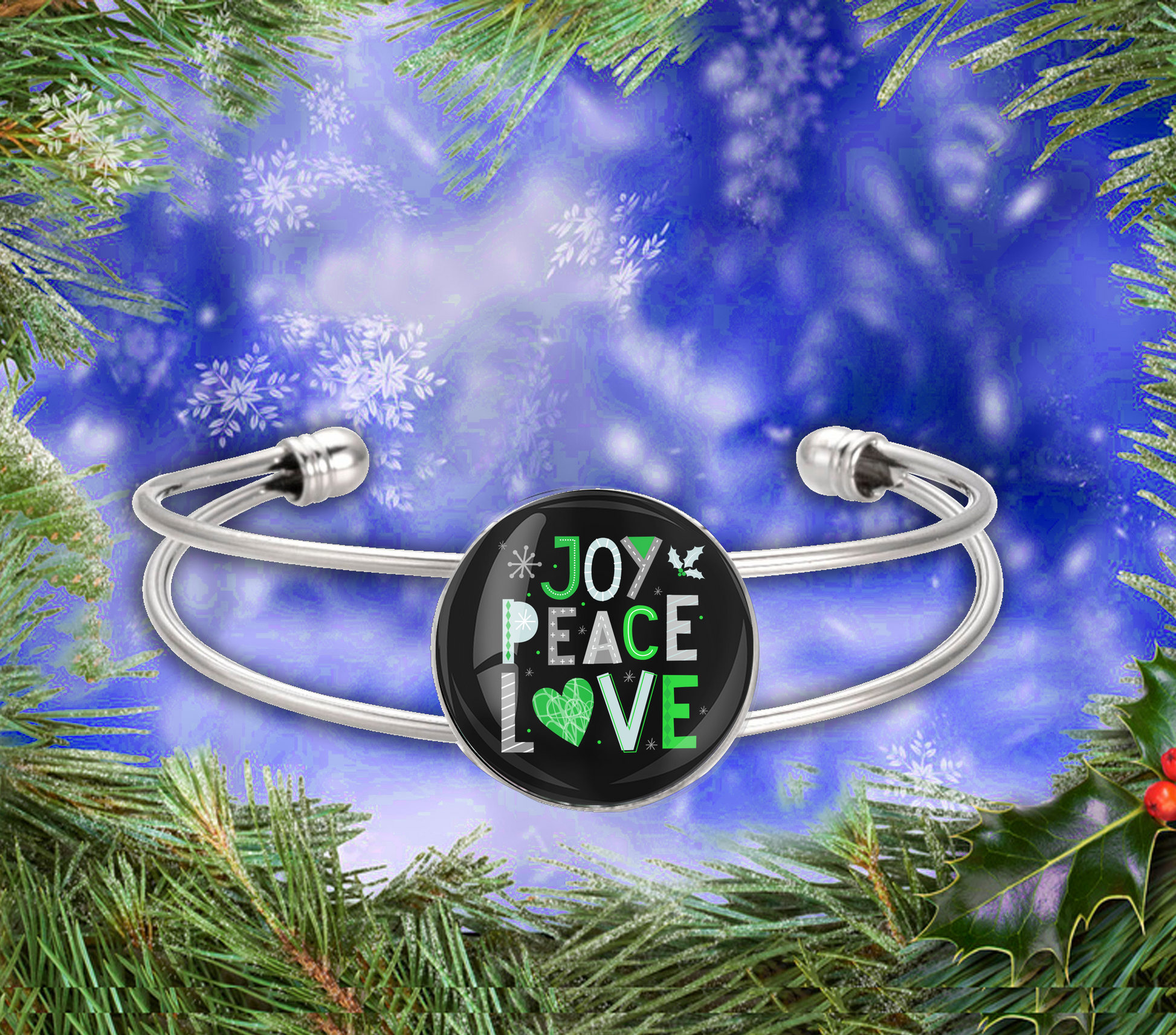 JOY PEACE LOVE-GREEN-CHRISTMAS BRACELET