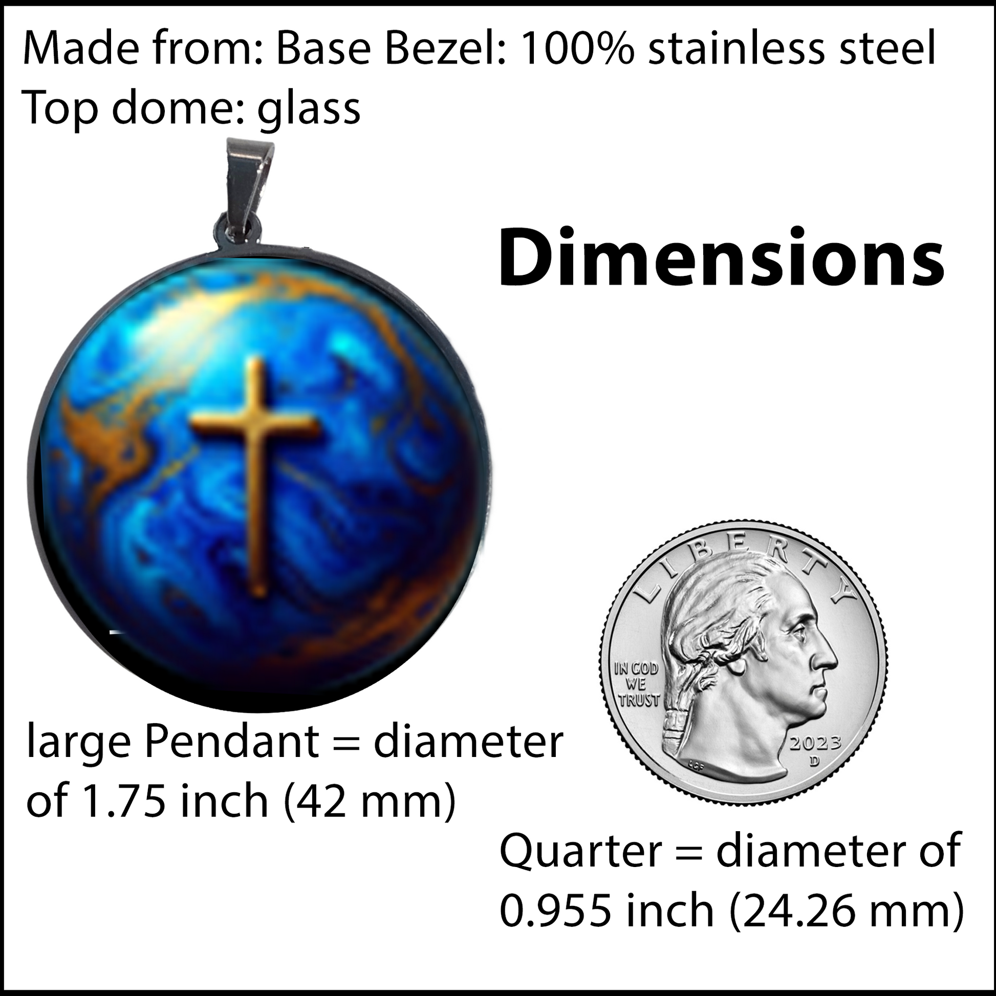 WORLD AND CROSS-BLUE-LARGE PENDANT